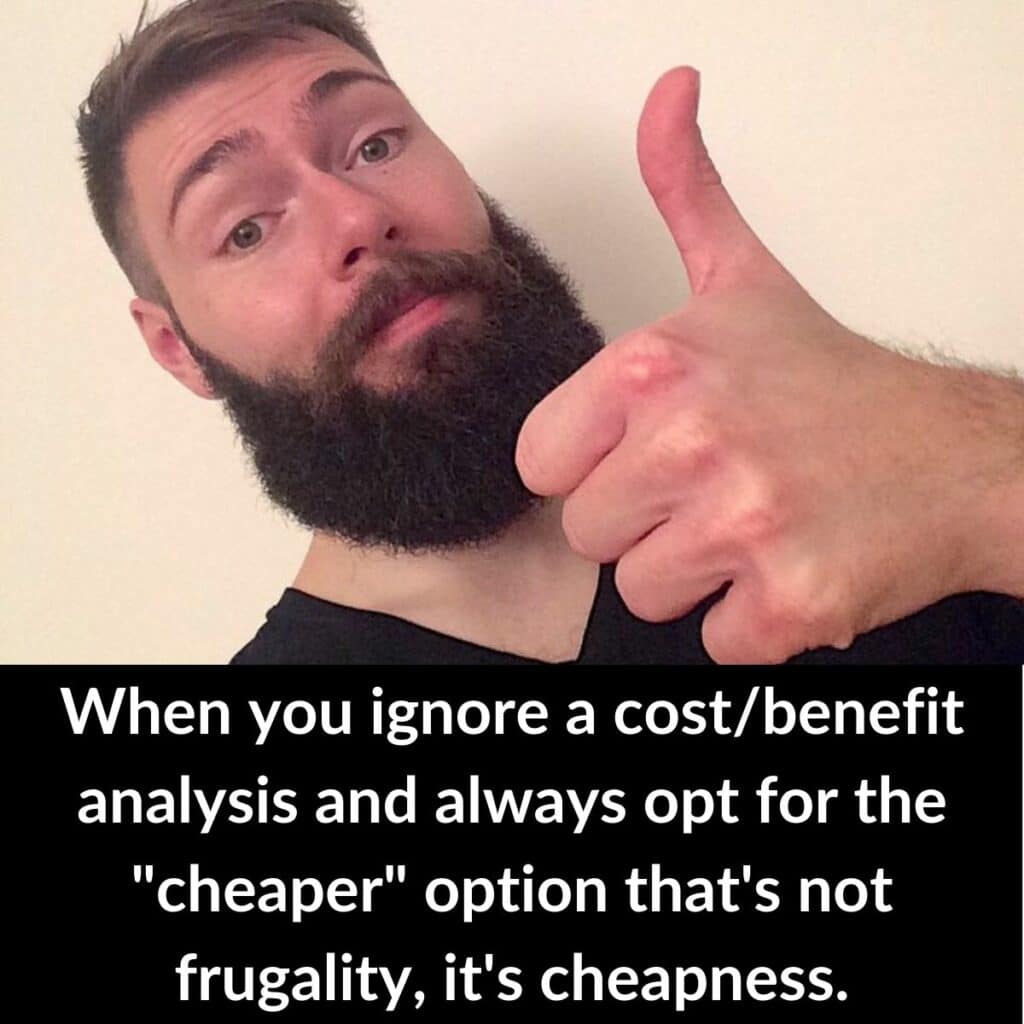 Here’s another useful distinction in considering the difference between frugality and cheapness. If you’re cheap, you want to avoid spending money right now, and you don’t think hard about how your decision will affect the future. If you’re frugal, however, you do think about the future.