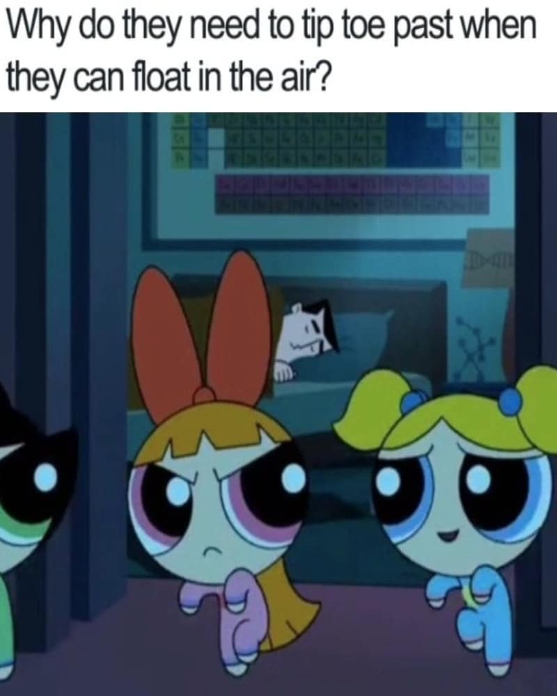 En un intento de no despertar al profesor, optaron por caminar de puntillas en lugar de flotar silenciosamente. ¿Olvidaron sus superpoderes por un momento? Si pudiéramos volar, ¡jamás volveríamos a caminar!